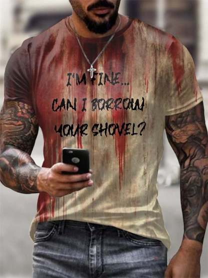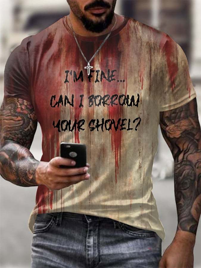 Men's Halloween Blood Im Fine, Can I Borrow your Shovel Print T-Shirt
