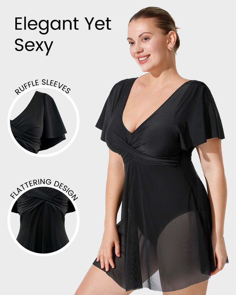 Plus Size Full Coverage Ruffle Swimdress