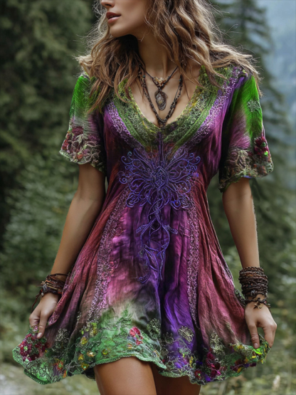 Women's Viking Celtic Knot Gradient Art Linen Short Mini Dress