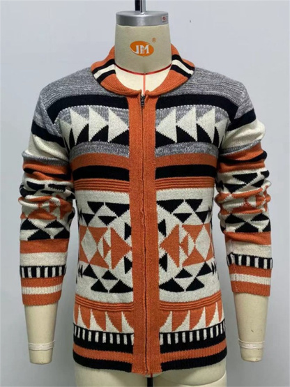 Men's Sweater Cardigan Zip Sweater Sweater Jacket Knit Button Knitted Geometric Shirt Collar Casual Clothing