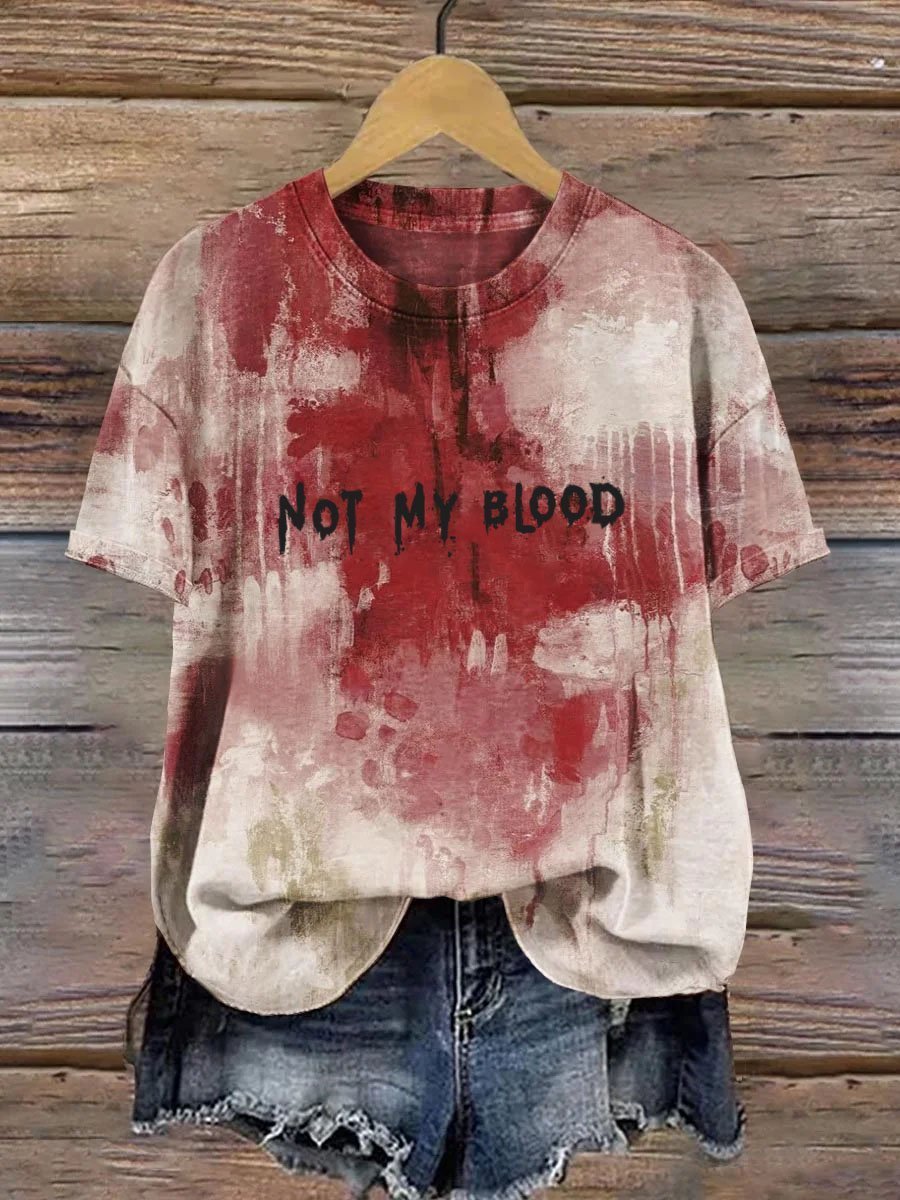 Women's Halloween Bloody Not My Blood Print Casual Tee