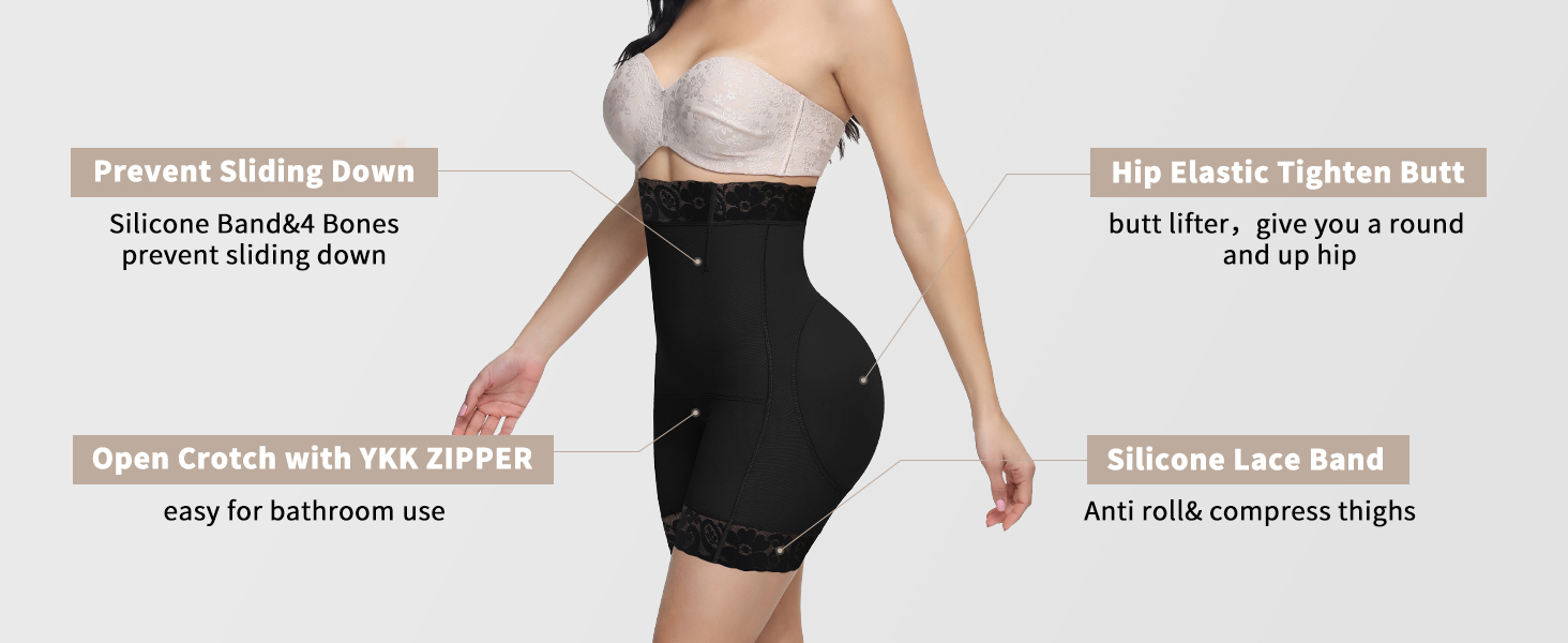 • Stay in place: We added 4 bones to the waist of the faja shorts to prevent slipping down, and at the same time make the waist of tummy control shapewear have more tension to better fit your waist.The lace part of the waist and thighs is designed with internal glue to be non-slip and not easy to roll up. We've tested these details of our body shaper for women, making our women's shapewear control panties to be the perfect choice for you.