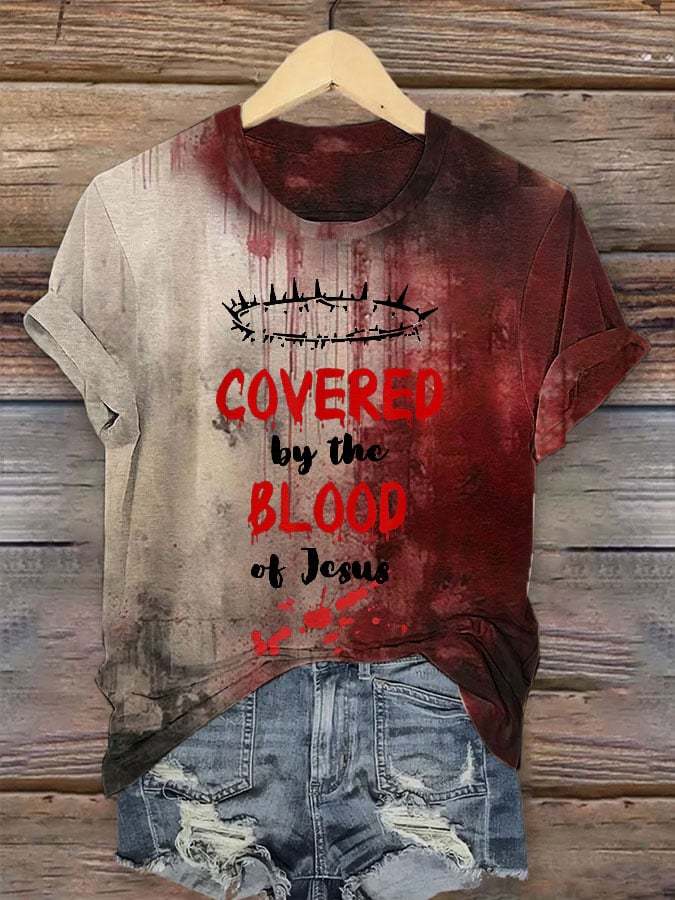Women Covered By The Blood of Jesus Bloody Print T-shirt