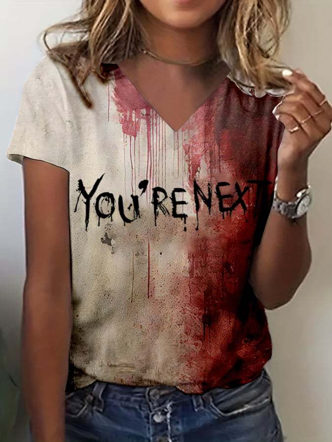 Women's Bloody You're Next Halloween Print V-Neck T-Shirt