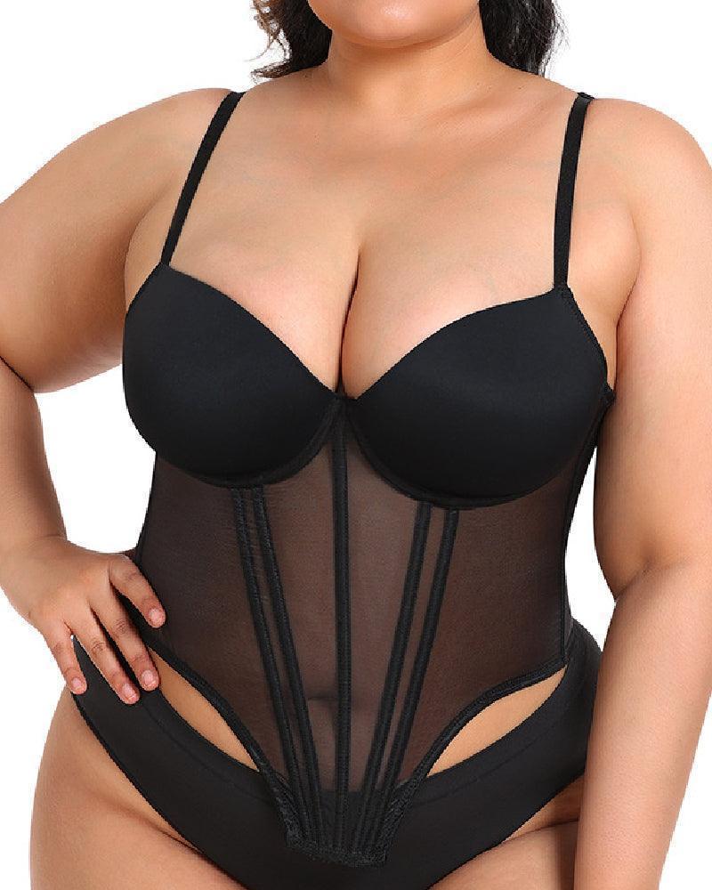Women's Sexy Mesh Corset Top Overbust Underwire Camisole Boned Bustier