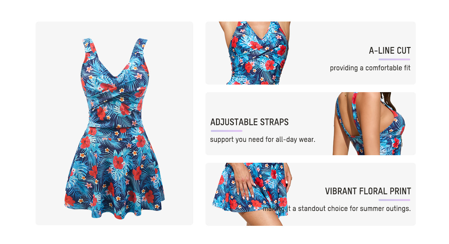 Floral Print One-Piece Swim Dress