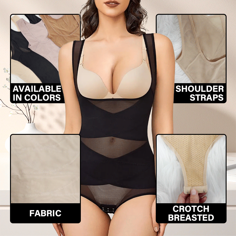 U-shape push up breast bodysuit. This all-in-one design of shapewear bodysuit tummy control features a u-shape push-up that enhances the bust line and lifts the buttocks, while the wide shoulder straps provide stress-free support. The unique front u-type design of mesh bodysuit gathers and lifts the breasts, creating a perfect cleavage. Also pair it with your favorite bra and enjoy the comfort of wide shoulder straps designed to relieve pressure and provide all-day wearability.