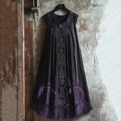 Women's Vintage Viking Raven Celtic Knot Art Linen Dress