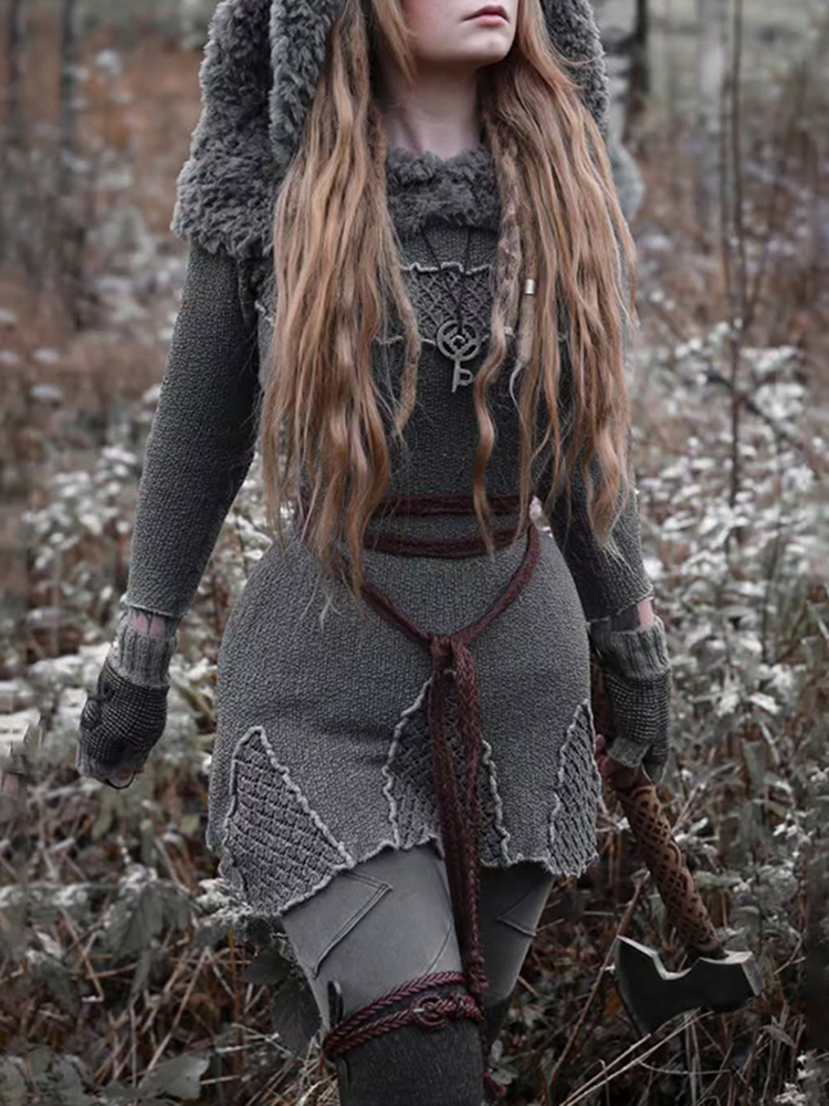 Women's Celtic Knotted Viking Jacquard Crew Neck Sweater Dress