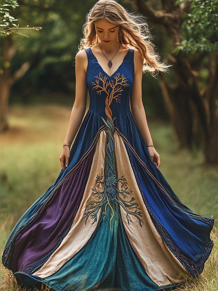 Viking Tree Of Life Patchwork Belt Maxi Dress