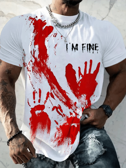 Men's I'm Fine Bloodstain Printed Casual T-Shirt