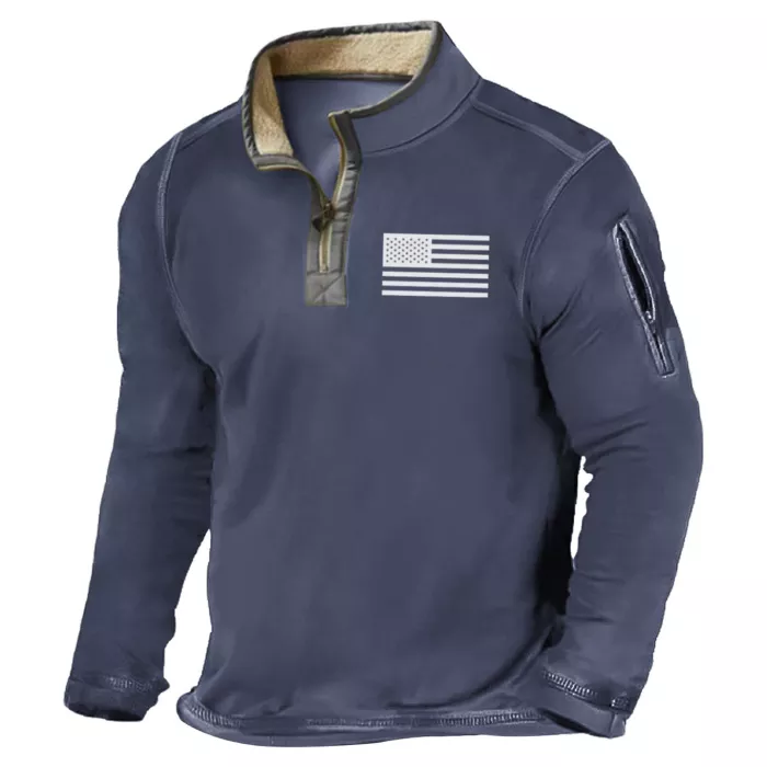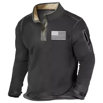 Men Woolly Collar Zipper USA Flag Print Sweatshirts