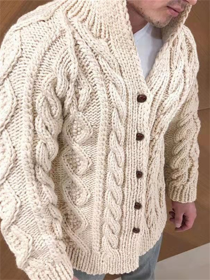 Men's Solid Color Thick Cardigan Sweater
