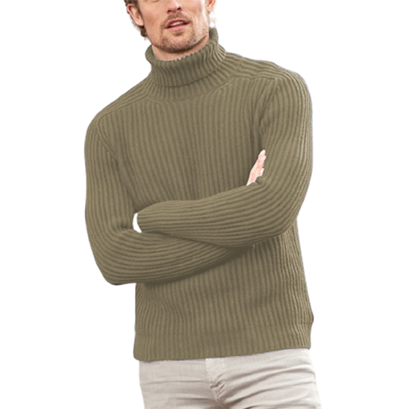 Men's turtleneck sweater casual solid color vertical jacket on the bottom line shirt