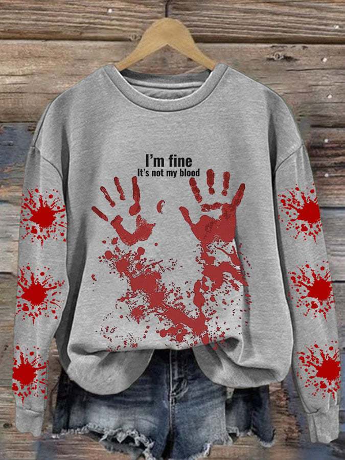 I'M Fine It'S Not My Blood Halloween Women'S Printed Casual Long-Sleeved Sweatshirt