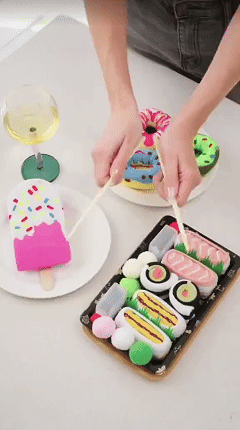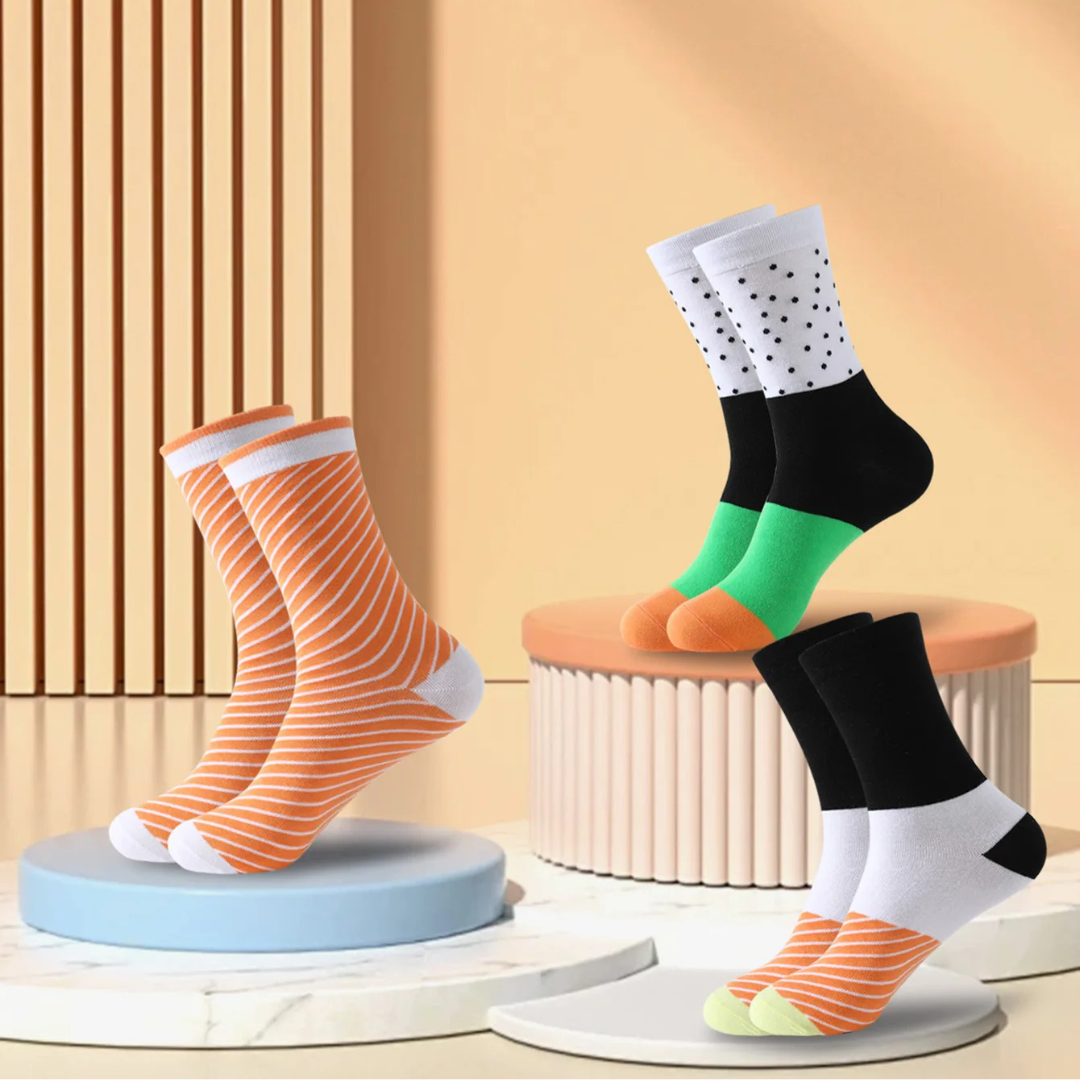Comes with 3 pairs of sushi themed socks in the bento box!