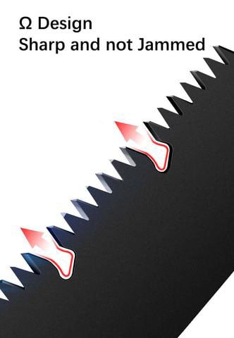 Ω SHAPE creatively set and used among the sawteeth which guarantees TOP SHARPNESS for fast high efficiency cutting work without saw stuck or jammed in the tree.