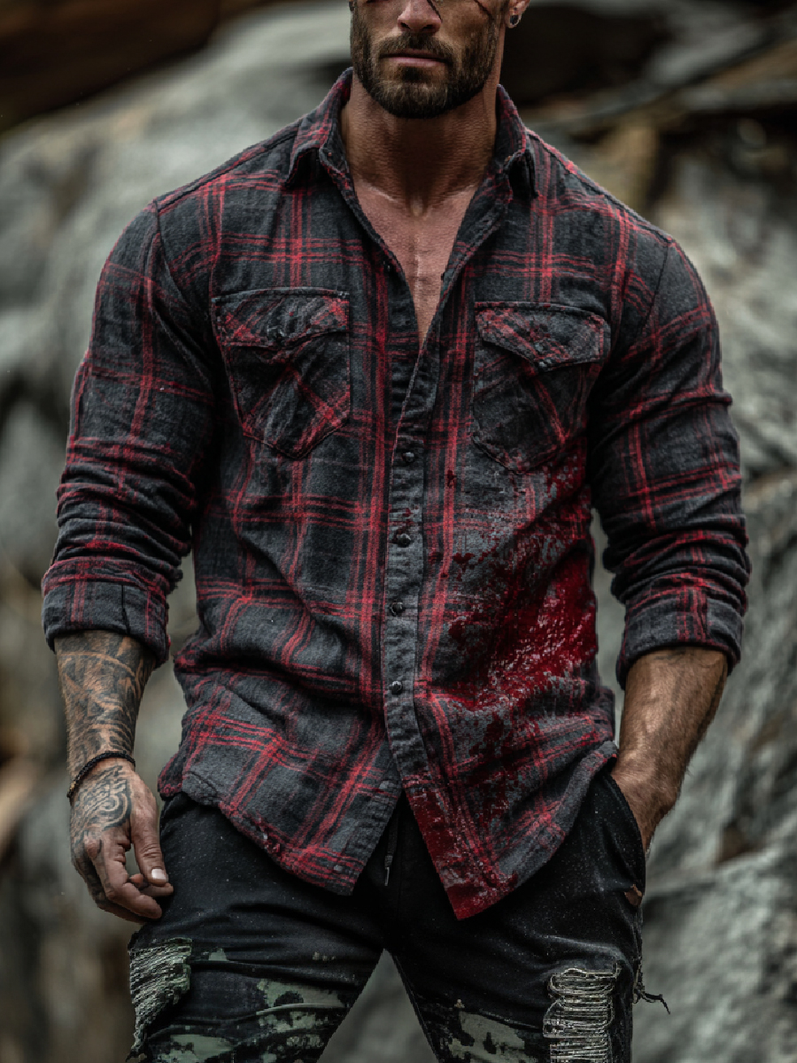 Vintage Blood Art Check Long Sleeve Button-Down Shirt