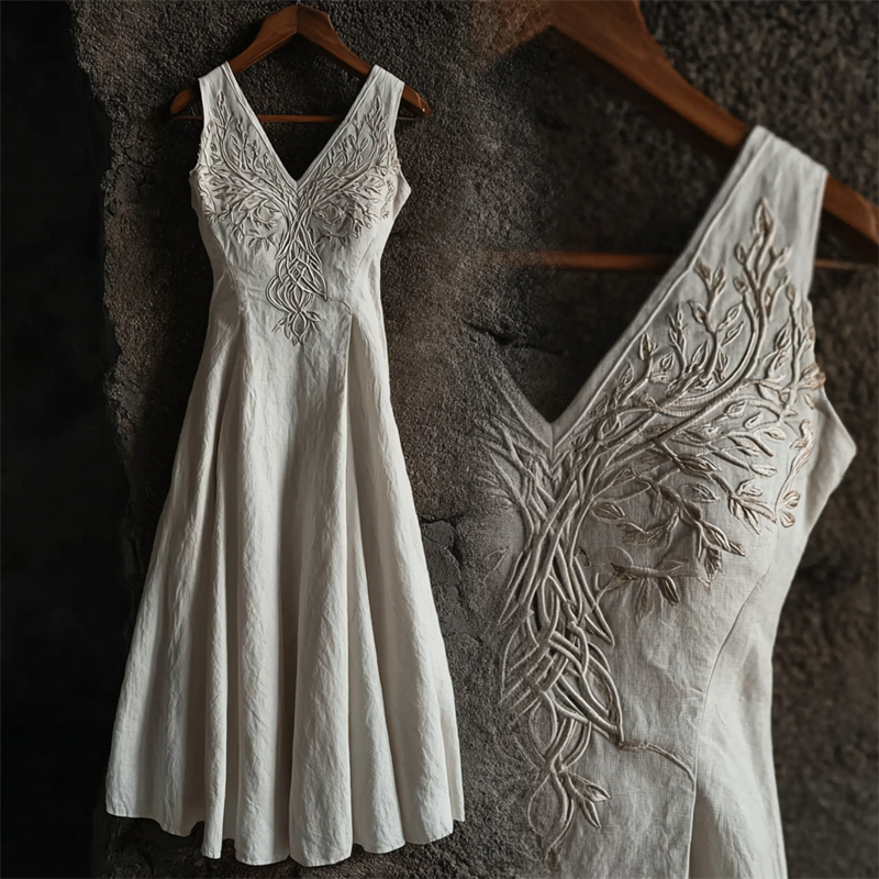 Vintage Tree Of Life Embroidered Linen Maxi Dress