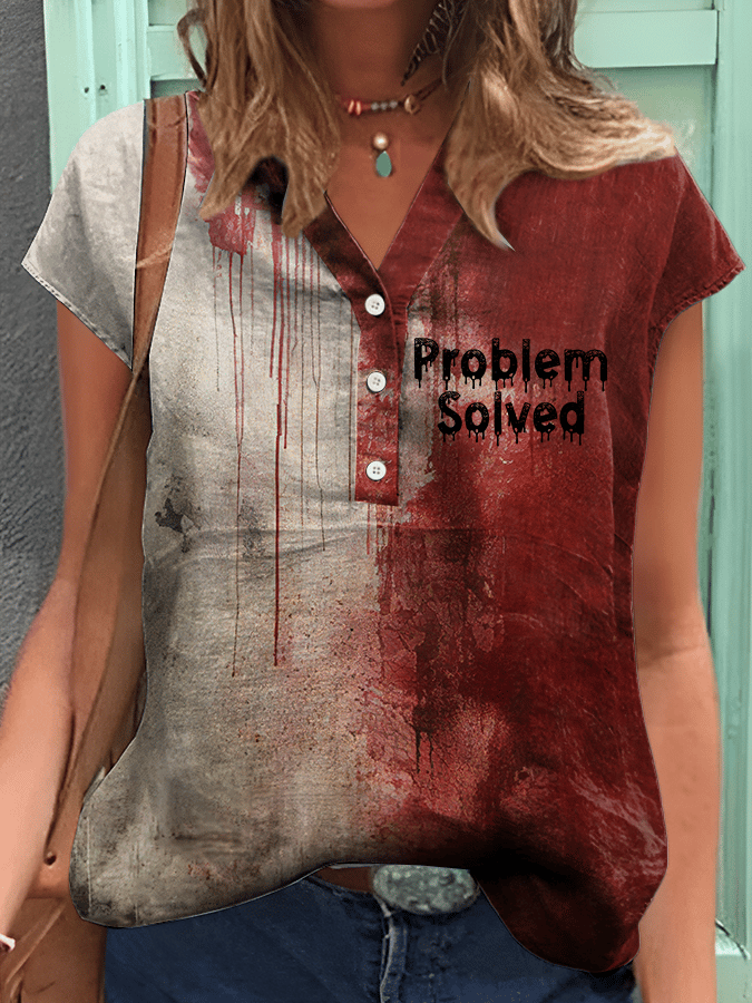Women's Bloody Problem Solved Halloween Print Shirt