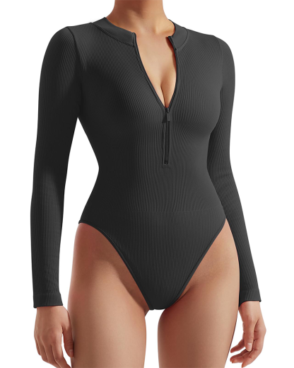 Sexy Turtleneck Long Sleeve Bodysuits : Flattering stand neck and zip, Deep V, Mock neck.